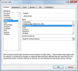 Your format will preview in the Sample box with the first date in your data. Or if you have a column of dates you can specify that you want the dates to appear as March 14 2012 14-Mar-12 or 314. Formatting cells with number date Mar-12 or mmm-yy.